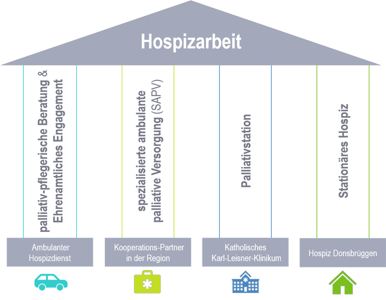 • Begleitung schwerkranker und sterbender Menschen und ihrer An- und Zugehörigen in ihrem häuslichen Umfeld, im Krankenhaus sowie in Pflege- und Betreuungseinrichtungen
