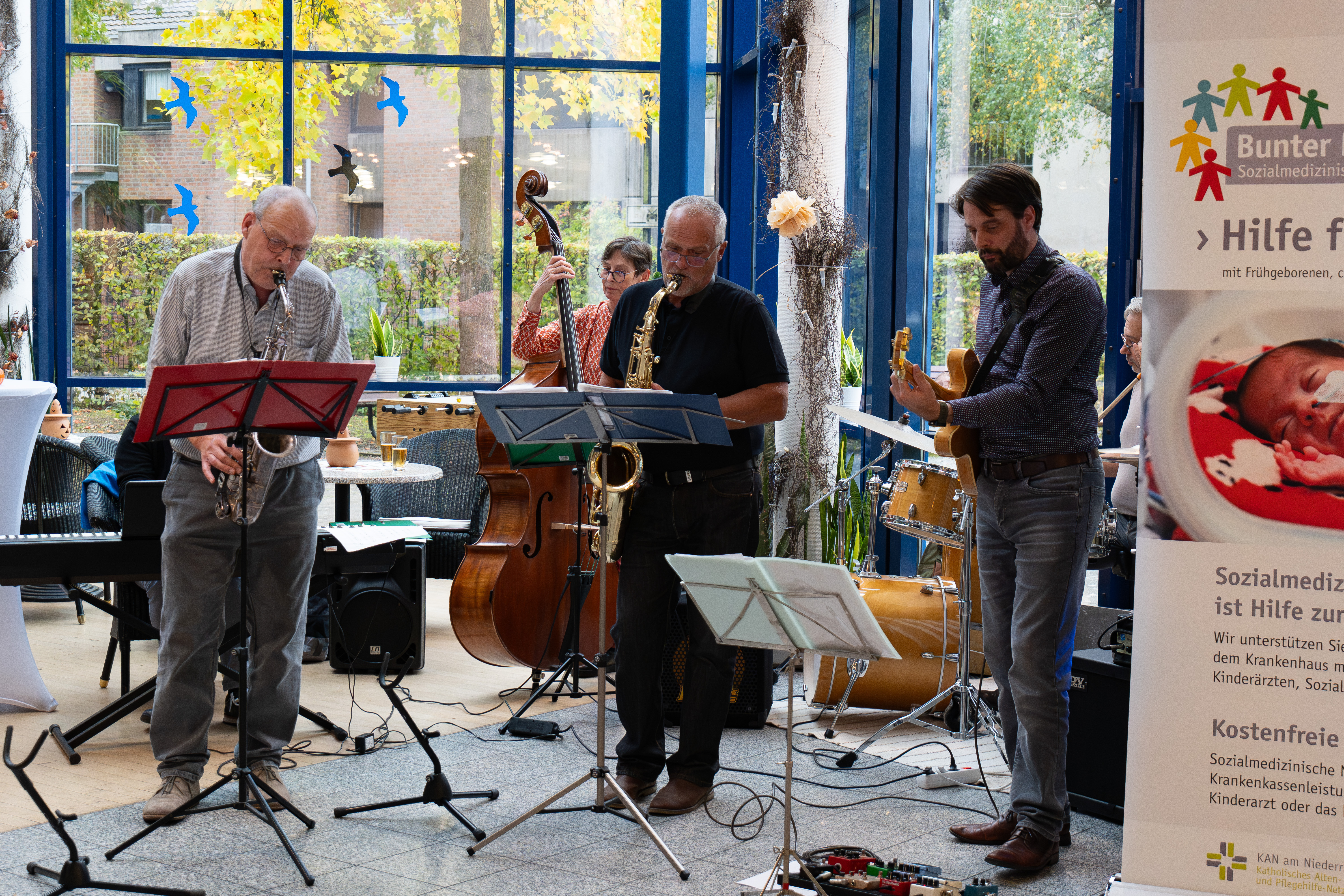 Durch den festlichen Abend führte Frau Andrea Franken, die mit einem interaktiven Quiz für gute Stimmung sorgte. Höhepunkte des Abends waren die Premiere des neuen Imagefilms sowie die Verkündung der Nominierung des Bunten Kreises Kleverland unter die Top 3 für den Sozialpreis „Starkes Team“ der Katholischen Kliniken Deutschlands. Den musikalischen Abschluss bot Dr. Rübo mit seiner Band „Ida und so“, die mit Jazzklängen für einen stimmungsvollen Ausklang sorgte.